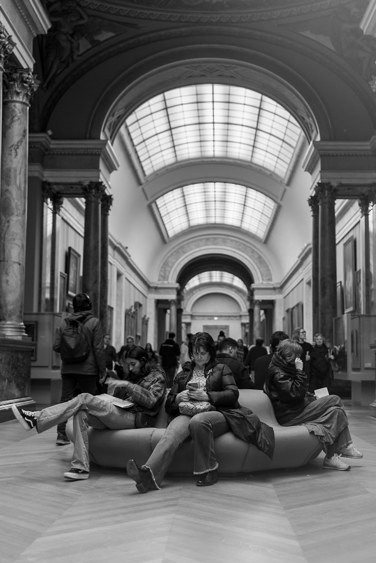 This photo series at the world-famous Louvre in Paris explores the challenges of museum visits, highlighting issues like overcrowding, fatigue, frustration, disorientation, lack of time, and superficial engagement.